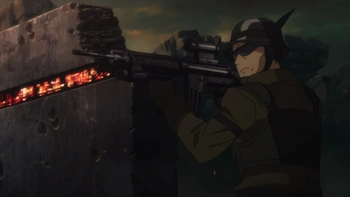 Nachdem Dynes Geschwader herausgefunden hatte, dass das Mafia-Jagdgeschwader einen Leibwächter namens Behemoth angeheuert hatte, der eine GE M134 Minigun benutzte, versuchten Arashi und die anderen, ihre Position zu halten, wurden aber allmählich zurückgedrängt. Als Sinon zur Hilfe kam, wurde Arashi angewiesen, mit seiner M4 Deckungsfeuer zu geben, während Jin und Miso von links und Sinon und Dyne von rechts angriffen.
