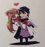 Una ilustración chibi de Asuna y Kirito.