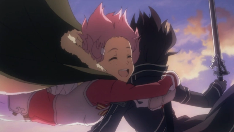 Después de descansar por la noche, Kirito cava un hoyo y encuentra el lingote de cristalito. Kirito le dice a Lisbeth que están en el nido del dragón y la razón por la que el material era tan difícil de obtener es porque son las heces del dragón, asqueando a Lisbeth. Dado que el dragón es nocturno significaba que pronto volvería. Al ver al dragón, Kirito agarra a Lisbeth y corre por la pared hasta llegar al dragón. Entonces el dragón es apuñalado con Elucidator, haciendo que vuele fuera de su nido, llevándose a Kirito y Lisbeth junto con él. Los jóvenes se toman de las manos y emprenden la caída libre, mientras eso ocurre, Lisbeth le confiesa sus sentimientos a Kirito. Sin embargo, Kirito no la oye debido al rugido del viento. Sin inmutarse, Lisbeth sonríe y lo abraza.