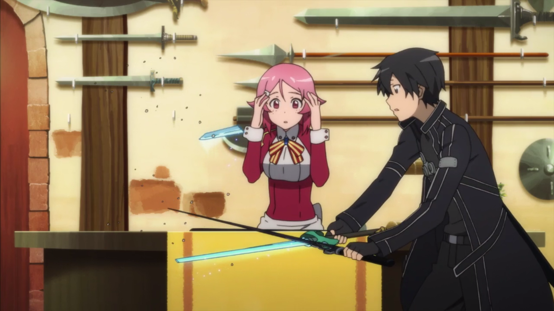 Kirito breaking Lisbeth's best sword.