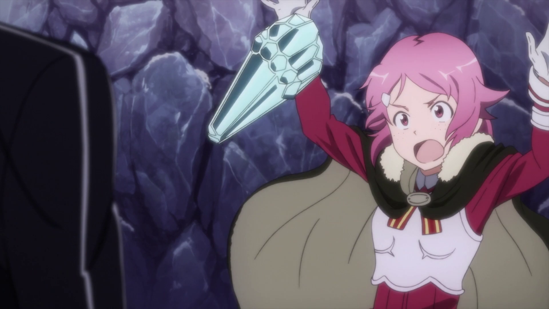 Traveling together on the west mountain of the 55th Floor, Lisbeth began to grow cold, so Kirito gave her one of his coats. They reached a place filled with crystals, causing Lisbeth to run forward with glee, eager to explore. However, she was stopped by Kirito, who told her to get a Teleport Crystal ready in case the dragon showed up, and to hide and not come out no matter what until the dragon was defeated. Lisbeth insisted that she could help, only to be adamantly refused by Kirito. Surprised, Lisbeth followed his instructions and stayed put.