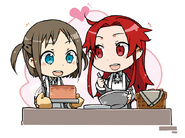 Tiese with Ronye on an illustration promoting the release of Alicization War of Underworld Episode 05 (Alicization Episode 29)